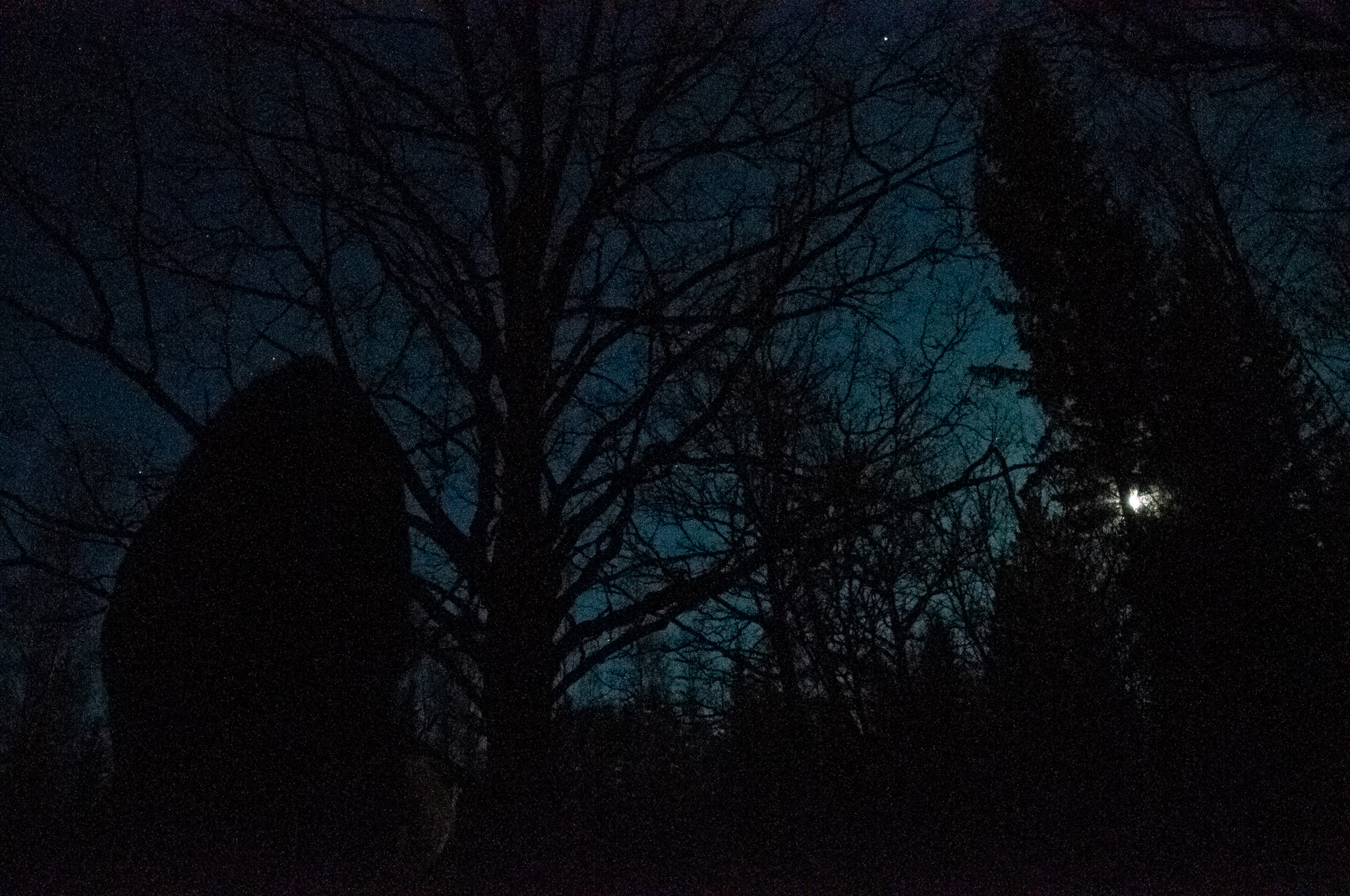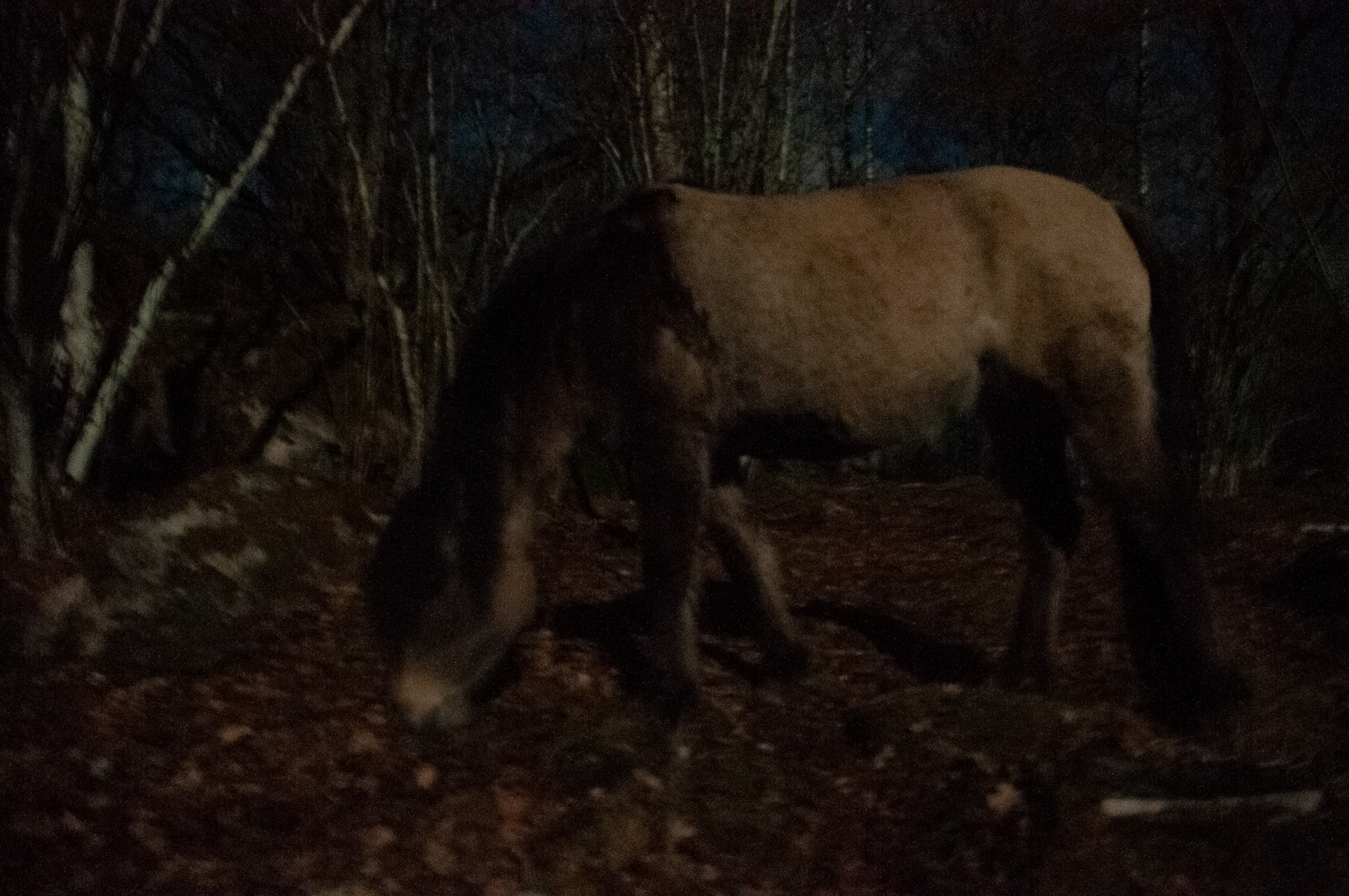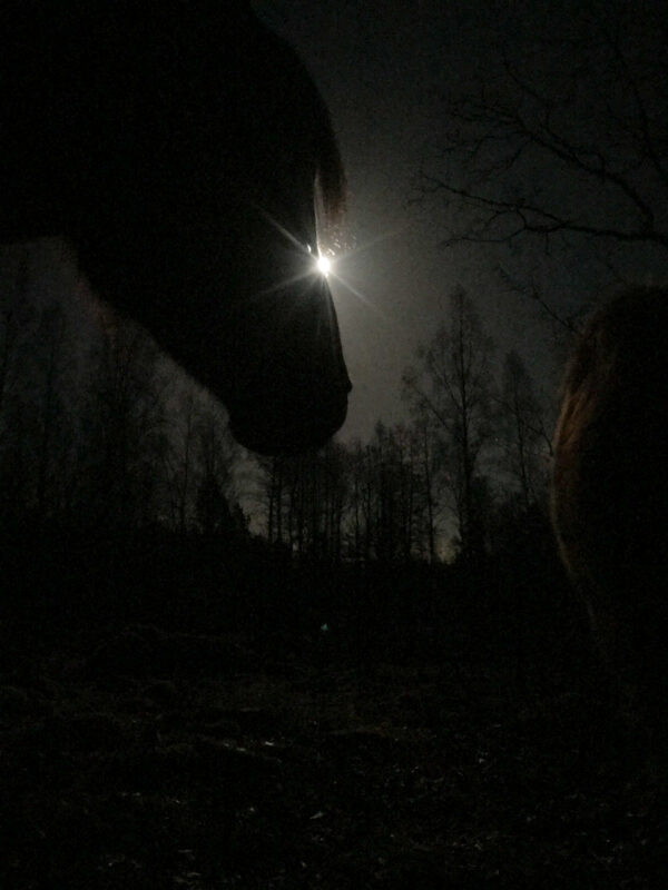 Länge har jag tänkt att det skulle vara kul att sova ute med och hos våra två basjkirer Malushka och Nikolaj någon gång. Nu var det dessutom vindstilla och klar himmel – så jag plockade ihop sovsäck och varmt renskinn att ligga på och traskade ut i månskenet. Hästarna blev nog först lite förvånade – men sen när jag hade bäddat ner mig i sovsäcken stod Nikolaj alldeles bredvid mig och ”vakade över mig”. Länge, länge. Det var en underlig och underbar känsla.