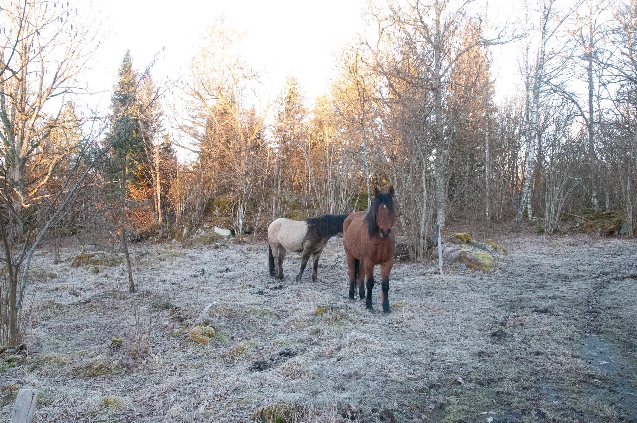 Verkligen skogsbad de lyx att få somna till kattugglans nattliga hoande och vakna till en hel konsert av tidig vårfågelsång. Och att vakna av att man känner vibrationerna i marken när hästarna närmar sig galopperande på morgonkvisten för att titta till mig. Medveten närvaro och livskvalitet när det är som bäst.